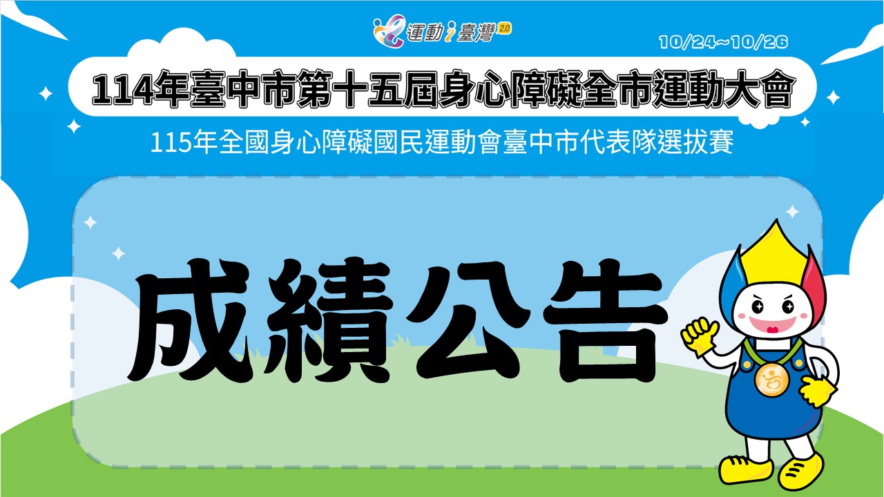 114年臺中市第十五屆身心障礙全市運動大會暨115年全國身心障礙國民運動會臺中市代表隊選拔賽 成績公告
